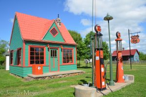 There’s not any advertising about this place, other than a half-hearted website (www.redoakmissouri.com). Beth had heard about it from the proprietor of a B&B she and her husband stayed at in the area. When we arrived, we were heartened to see the bright colored buildings across a cornfield. And a large parking lot next to a red barn promised easy parking. But the parking lot was roped off, and we ended up having to disconnect our tow car and squeeze Bessie in through some narrow gates, parking on some grass.