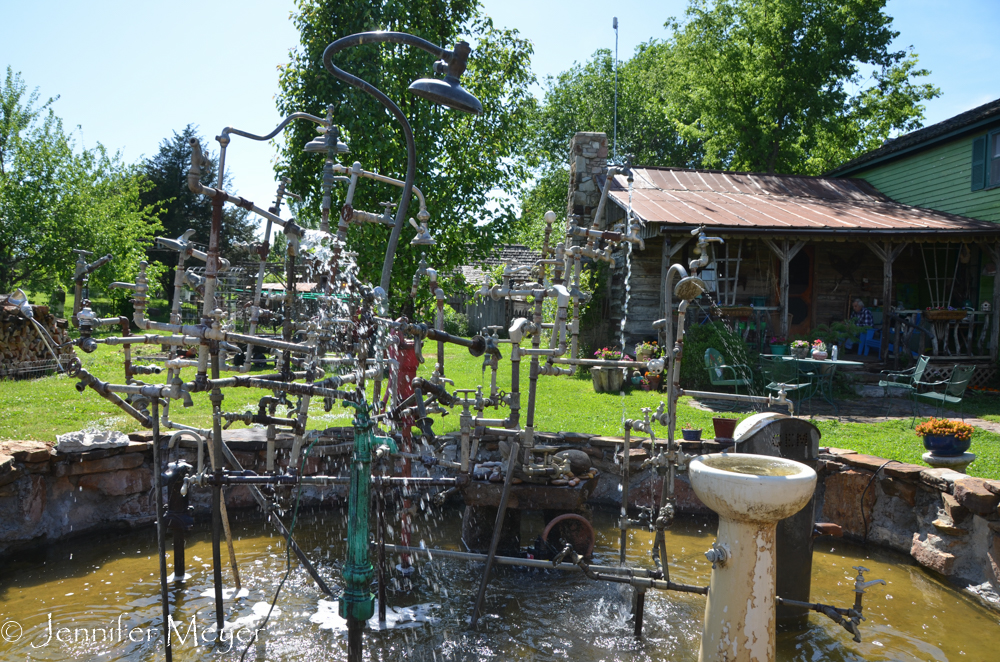 I took a photo of a crazy pipe fountain in front of a residence, and then realized there was an old man sitting on the porch. I waved and commented on the fountain, and he lifted a hand. Only later when I did some research did I realize this was Lowell Davis himself.