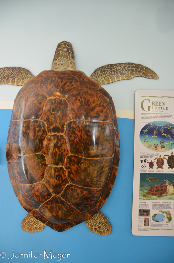 We stopped at the Turtle Hospital in Marathon. Kate loves turtles, and we’ve rescued a few from roads on our trip. We were curious about a turtle hospital that actually has its own ambulance. We decided not to take the full tour for $22, but the exhibit in the lobby was very informative. This place was started in the 70s by Richie Moretti, who bought a small motel and decided to convert the pool into a sea aquarium for guests. He ended up saving a few local sea turtles, and before he knew it, he was a full-on turtle rescuer, called to help whenever an injured sea turtle was found. In 1986, he converted the motel into a large non-profit turtle rehabilitation center with 23 tanks in addition to the pool. Eventually he bought the nightclub next door and turned it into a turtle hospital. Moretti and his staff have rescued, rehabilitated and released hundreds of turtles over the years, and they work to educate the public about sea turtles and how to keep them safe from hazards.