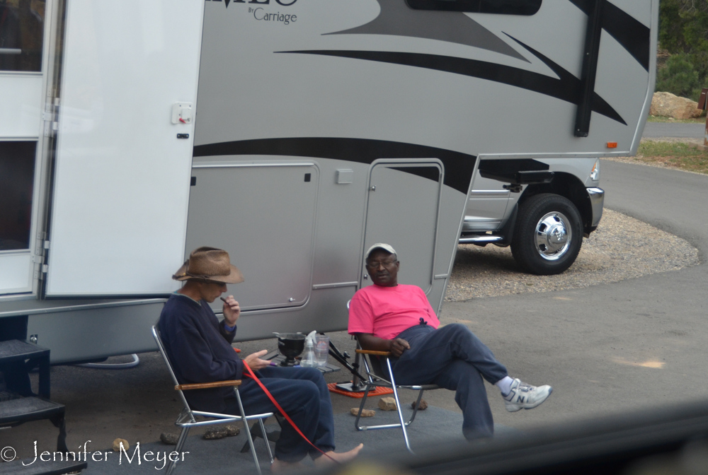 When we pulled into our site in Trailer Village, Kate and I raised our eyebrows at the sight of two men sitting outside a large fifth wheel next to us. “PLU?” Kate suggested, using our friend Kelly’s acronym for “People Like Us.”