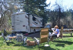 It was 6:00 pm before we finally rolled away on Friday, Honda behind us, into the sunset, madly waving goodbye to our best-neighbor-friends, Kathleen and Madison. One hour on a dusky I-5, then one more hour on a curvy, hilly road, watching the full moon rise giant over the hills. At last, our campsite, with Anita and Hilary welcoming us with hugs, wine, and dinner.