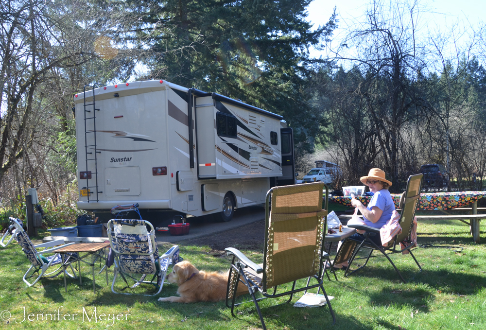 It was 6:00 pm before we finally rolled away on Friday, Honda behind us, into the sunset, madly waving goodbye to our best-neighbor-friends, Kathleen and Madison. One hour on a dusky I-5, then one more hour on a curvy, hilly road, watching the full moon rise giant over the hills. At last, our campsite, with Anita and Hilary welcoming us with hugs, wine, and dinner.