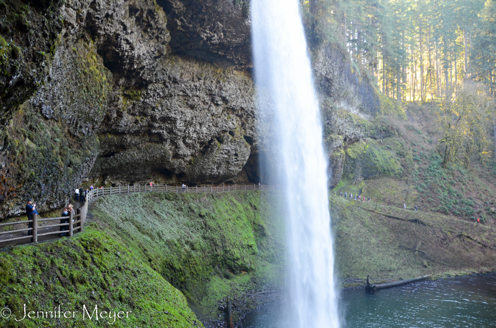 You can’t camp at Silver Falls, though, and not even see one waterfall. So mid-afternoon, Kate and I dragged ourselves out of our camp chairs and hiked to the first fall on the loop. That first one, South Falls, if my favorite anyway, because the path takes you behind the falls.