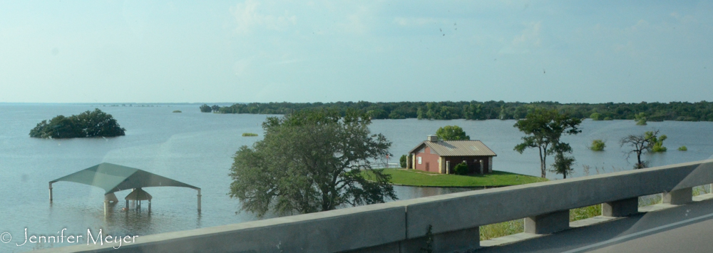 We booked two nights in a 1,000 Trails resort on Lake Whitney, about 40 miles from Waco. This one, as it turns out, was in bad shape, but not through any fault of its own. The recent floods had washed out the road to their two main loops, laundry facilities, adult lodge and pool. And before that, lightning and wind storms had felled many trees. So they were only partially open, with one pool and one wooded loop. But it was an okay place to rest our heads for the weekend.